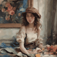 Ομορφιά και τέχνη, νεαρή γυναίκα με καπέλο, εμπνευσμένη από την επίδραση των καλλιτεχνών.